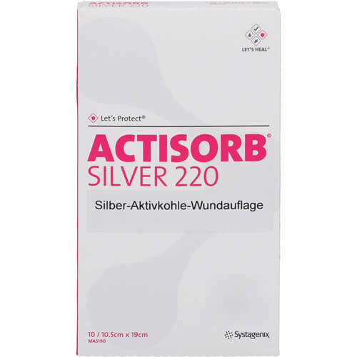 ACTISORB 220 Silver 10,5x19 cm steril Kompressen (10St)Einheit: 10 St Kompressen Firma: Medi-Spezial Kontaktdaten Kategorie: Medizinische Verbände » Salbenverbände mit Antiinfektiva Bestell-Nr. (PZN): 9426232