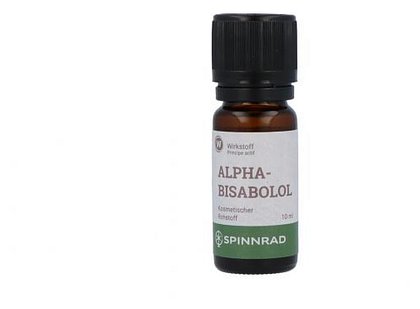 Anwendung: Bisabolol ist löslich in Öl und Alkohol, nicht löslich in Wasser und Glycerin. Zur Verarbeitung in kosmetischen Formulierungen wird es in die auf ca. 30°C abgekühlte Emulsion eingerührt. Einsatzkonzentration: 0,1 - 0,5%.