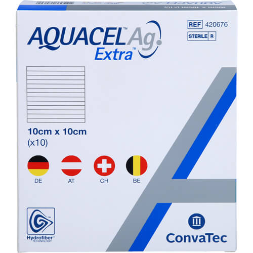 AQUACEL Ag Extra 10x10 cm Kompressen (10St)Einheit: 10 St Kompressen Firma: zelhealth Kontaktdaten Kategorie: Medizinische Verbände » Salbenverbände mit Antiinfektiva Bestellnummer (PZN): 18126049 PDF-Dokumente: