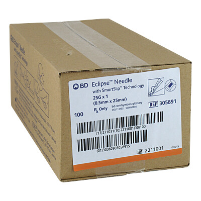 BD ECLIPSE Sicherheitsinjekt.Kanüle 25 G 1 (100St)Einheit: 100 St Kanüle Firma: Becton Dickinson Medication Delivery Solutions Kontaktdaten Kategorie: Medizinisch-technische Hilfsmittel » Parenterale Applikation Bestellnummer (PZN): 9235213 Hilfsmittelnummer: 03.99.99.1032