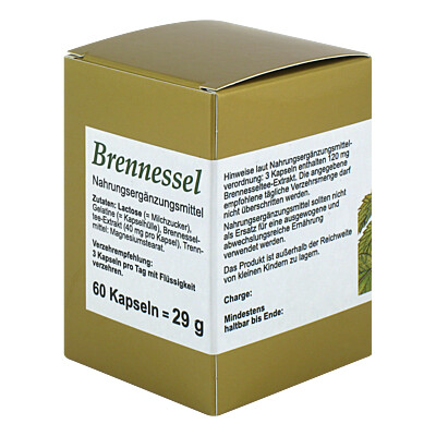 BRENNESSEL KAPSELN (120St)Einheit: 120 Kapseln(Abbildung ähnlich, andere Größe oder Ausführung) Firma: FBK-Pharma Kontaktdaten Kategorie: Nahrungsergänzungsmittel » Phytotherapeutika, Immunmodulatoren Bestellnummer (PZN): 4802825 empf. VK*: 20,40 € unser Preis: