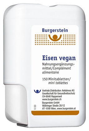 BURGERSTEIN Eisen vegan Tabletten (150St)Einheit: 150 Tabletten Firma: Burgerstein Mikronährstoffe Kontaktdaten Kategorie: Nahrungsergänzungsmittel » Vitamine, Mineralstoffe, Vitalstoffe Bestell-Nr. (PZN): 19414224 PDF-Dokumente: Produktinformationen (Zutaten, Inhaltsstoffe)