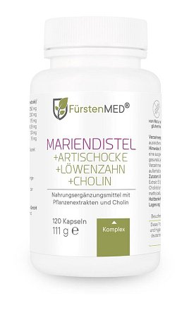 FÜRSTENMED Mariendistel Artischocke Löwenzahn Kps. (120St)Einheit: 120 Kapseln Firma: FürstenMed Naturprodukte Kontaktdaten Kategorie: Nahrungsergänzungsmittel Bestell-Nr. (PZN): 17276700 PDF-Dokumente: Produktetikett mit Zutaten
