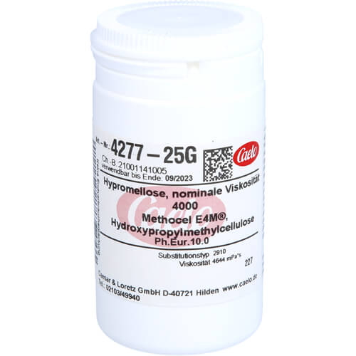 HYPROMELLOSE 4000 Natrosol E4M (25g)Einheit: 25g Firma: CAESAR & LORETZ Kontaktdaten Kategorie: Apothekenbedarf, Rezeptur » Pflanzendrogen, Chemikalien Bestell-Nr. (PZN): 9777902 Biozidprodukte vorsichtig verwenden. Vor Gebrauch stets Etikett und Produktinformationen lesen. PDF-Dokumente: Sicherheitsdatenblatt auf caelo.de unser Preis: