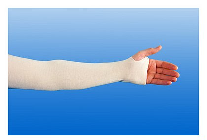 Produktbeschreibung und Zweckbestimmung: Feinmaschiger, dicht gestrickter Schlauchverband, der aus ungebleichter Baumwolle hergestellt ist. Eine hohe Querelastizität sorgt für gute Anpassungsfähigkeit. Die ungebleichte Baumwolle hat wasserabweisenden Charakter und überzeugt durch ihre hohe Hautverträglichkeit. Er dient als Unterzug bei starren oder halbstarren Stützverbänden. Die dichte Struktur schützt die Haut vor dem mit Polyurethanharz getränkten Material und ermöglicht außerdem die Applikation eines enganliegenden Verbandes.