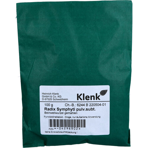 RADIX SYMPHYTI pulv.subt. (1000g)weiterer Name: Beinwellwurzel gepulvert Firma: CAESAR & LORETZ Kontaktdaten Kategorie: Apothekenbedarf, Rezeptur » Pflanzendrogen, Chemikalien Bestellnummer (PZN): 4296925 Warnhinweise: Nur äußerlich anwenden, z.B. für Umschläge. Keine innerliche Anwendung als Tee! Nicht verwenden in Schwangerschaft und Stillzeit.
